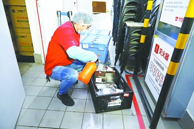 记者看到,这批虾在超市上架前,至少经历了7次外包装消毒:入关前、从大型冷库出库前,上车前、下车时、进入超市、入超市冷柜前,上架前。