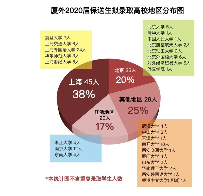但有关外国语中学推荐保送生限额也在逐步减少(如厦门外国语学校2016年和2017年获得保送生资格的人数逐年递减,2018、2019和2020年都维持在117人),按照本次公示的情况,今年只有105名保送资格生,比去年减少了12名。