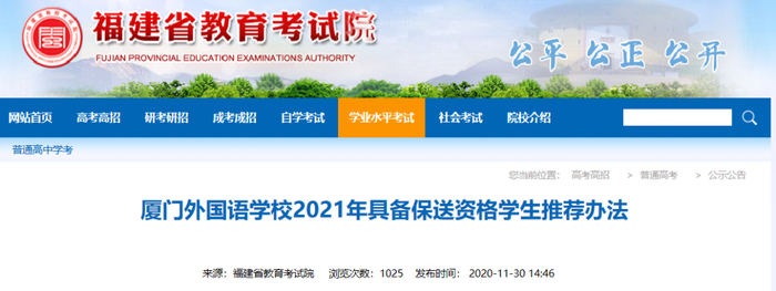 此外,福建省教育考试院也公布了厦门外国语学校2021年具备保送资格学生推荐办法。据了解,2021届厦门外国语学校将会有105名高三考生保送清北等名校。
