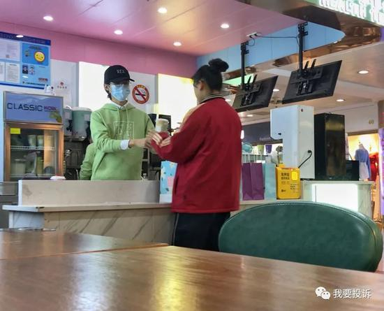 这家店就开在地下美食城的旁边。记者赶到时,奶茶店前并没有什么人。领队“小鸭哥”向店员使了使眼色,店员径直走到了收银台前。
