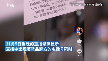 11月5日当晚的直播录像显示,当直播中出现茗挚品牌方的电话号码时,工作人员特意进行了遮挡,但张红的手机号码并未受到同等保护。