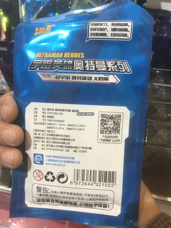 记者又扫了包装袋上的二维码,进入到相关公众号,并拨打了位于上海的客服电话。客服人员表示,无论是中国大陆地区版权方,还是浙江卡游动漫、浙江卡游科技,都是同一家公司。这名客服透露,该公司做了好几款卡游,奥特曼卡游只是其一。