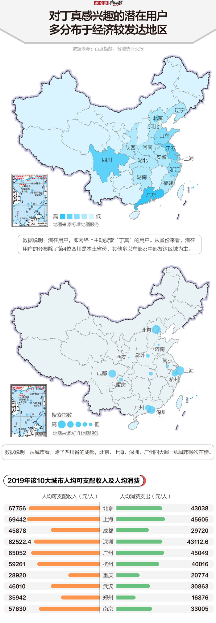 通过挖掘参与“丁真话题”的网友基本信息发现,对丁真产生好奇与兴趣的网友大部分以广东、北京、江苏、浙江等东部发达地区为主,然后是中部的河南、河北、湖北等省,未来可以预见到丁真带来的线下变现也会以这些地区为主。