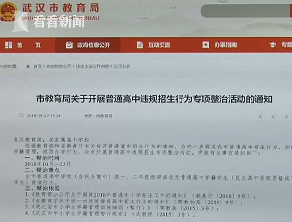 东西湖区教育局表示,高中教育不属于义务制教育,未考上高中是不能被普通高中录取或者是借读的。对于武汉为明学校的招生行为,现在还不能做出判定。要等到警方立案后,才能展开进一步调查。