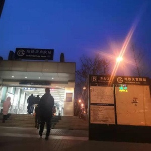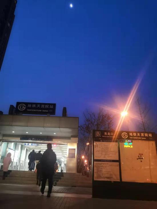天上还挂着月亮,早起的市民已经开始走进4号线天宫院站