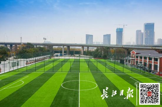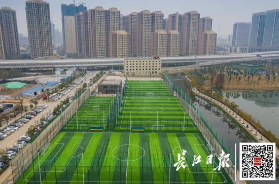 23日,长江日报记者来到汉阳墨水湖北路和玉龙路交会处,只见龙阳湖东北畔,今年新建的玉龙路足球中心内,一片片崭新的人工草皮十分醒目,环境优美。