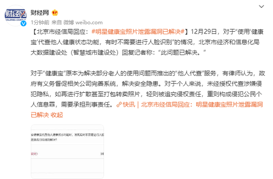 原标题:北京市经信局回应:明星健康宝照片泄露漏洞已解决