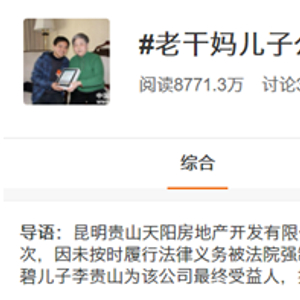 多家媒体发现,昆明贵山天阳房地产开发有限公司(以下简称“贵山天阳”)在11月4日新增一条限制高消费令。至此,该公司已被连续限制高消费19次,因未按时履行法律义务被法院强制执行6次,涉及金额约为9757万元。企查查资料显示,贵山天阳最终受益人便是“老干妈”陶华碧的大儿子李贵山,其持股比例为49%。