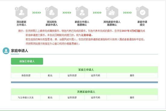 此外,在完成填写、确定提交家庭申请前,系统会弹出一条提示“家庭申请提交后,您和其他家庭申请人的个人申请将自动取消,其中正在轮候个人新能源小客车指标的,个人轮候次序将不再保留。”
