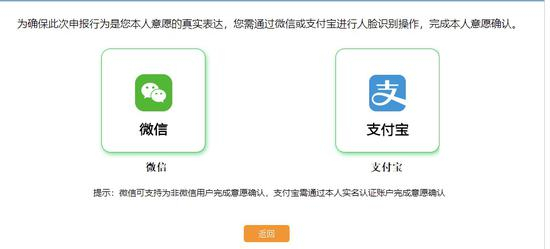 所有家庭申请人信息填写完成并核对无误后,需要进行意愿确认。通过手机扫描页面上的微信或者支付宝图标,手机页面会出现人脸识别认证页面,所有家庭申请人均通过后,可提交家庭申请。此环节是为了确保申报行为是本人意愿的真实表达。根据系统提示,目前微信可支持为非微信用户完成意愿确认,支付宝需通过本人实名认证账户完成意愿确认。