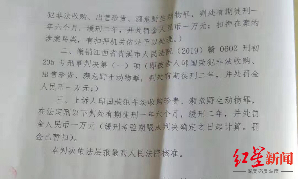 ↑江西邱国荣鹦鹉案判决书