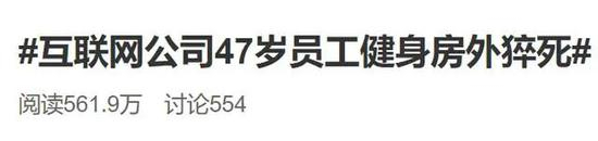 就在上个月,两家知名公司的员工猝死消息,也在社交媒体上引起广泛关注。12月3日,国美电器福州分公司一名27岁员工在年终誓师大会期间猝死。12月9日,商汤科技上海公司一名47岁的员工在公司健身房外猝死。