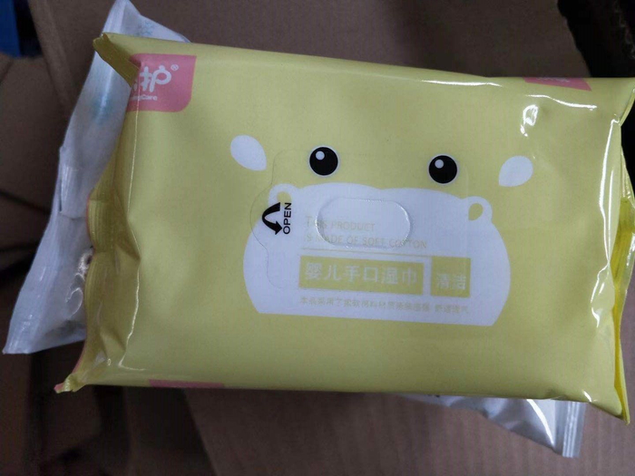 这位负责人向记者推荐了一款“专门面向直播带货”的婴幼儿手口湿巾。“这种湿巾就是专供带货主播的,卖得非常好,一包80片只要6毛5,一箱十包。”他给记者算了笔账,即使打着送福利的名义,一箱湿巾卖9.9元,主播依然还有利润。