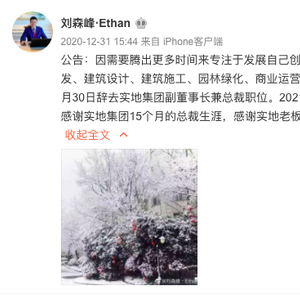 刘森峰在个人社交媒体账号宣布辞职