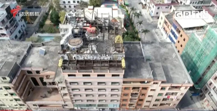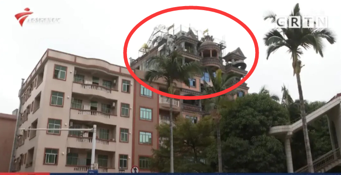 后经了解,2017年,这栋楼的业主准备经营一家主题餐厅,于是就私自在天台加建了游乐设施。但企石城管部门发现后,便要求业主进行整改。