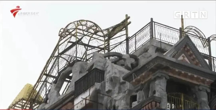 “东莞企石镇城管和执法分局综合法规股股长 谭楚林:当时建设时包括一些滑梯还有地球仪,就是一些航空主题方面的设备。因为它没有得到许可,也就是特种设施方面的许可,且它在高空方面安装这样的设备有一定的危险性,所以当时,我们一发现就立即要求业主拆除了。”