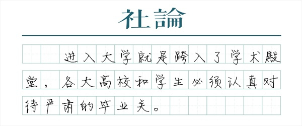 该办法传递出明确的信号:本科毕业论文并不能“混混而已”,进入大学就是跨入学术殿堂,要严格遵守学术规范。可见,今后的本科论文绝不可以掺水,这是一道非常严肃的毕业关,各大高校和学生必须认真对待。
