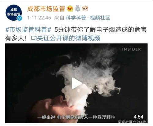 1月11日晚,成都市场监督管理局在官微上发布了一段介绍吸食电子烟危害的视频。