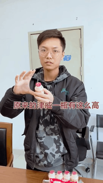 并表示:现在这款新的津威乳酸菌饮料,一瓶很快就喝完了。他觉得,夏天放在冰箱里会更好喝。