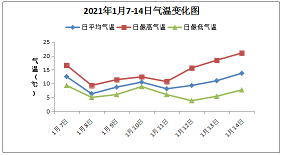 1月7日以来冷空气连日影响我市阴冷,日温差小日平均气温普遍低于10度1月12日国家气象站录得最低气温为3.8度为近两年来最低值直到这两天,14日-15日,气温才有所回升。