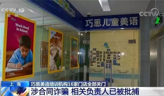 2019年5月15日上午,周浦万达百货三楼的“巧恩儿童美语”培训处,大量家长围在现场。家长们报警称,该培训机构门店关闭,工作人员都联系不上。一夜间,一家在本市浦东、闸北、长宁等多区域拥有16家门店的英语培训机构关门跑路。浦东分局经初步调查于2019年5月24日立案侦查。