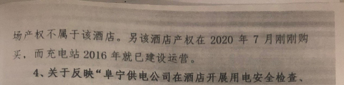 充电站是否属于违规搭建?阜宁县供电公司和酒店各执一词。