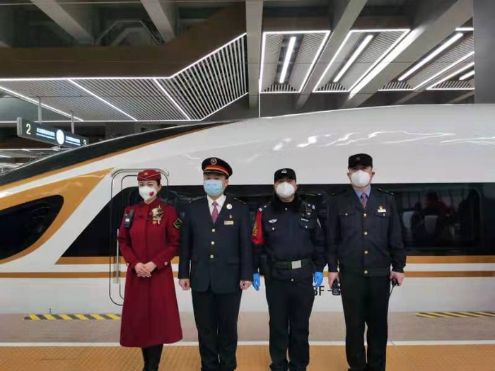 1月22日9点16分,由北京朝阳站开往哈尔滨西站的G913次旅客列车缓缓驶出一站台,北京铁路公安处乘警支队民警担当了首趟列车G913次的值乘任务。