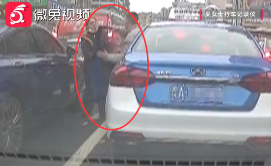 只见已经快回到自己车上的吴女士,又一次来到刘师傅车旁,按住车窗,把手伸进车内抓扯刘师傅,并拍打刘师傅的车窗玻璃。