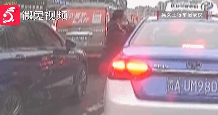 于是,两名乘客就这样上了刘师傅的车。然而,他的这一行为,却点燃了同行吴女士的怒火,已经转进最右侧车道的吴女士,干脆把车挡在了刘师傅的车前。