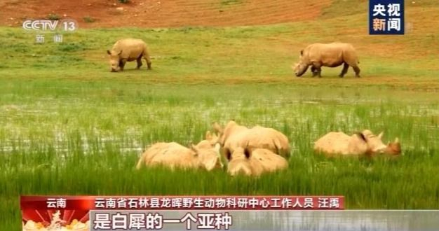 1922年,最后一头犀牛在云南省被捕杀后,祖国大地上再没有发现过犀牛的踪迹。2010年,我国科研中心经过多年与南非反复磋商后,最终获得南非许可,陆续从南非引进70头白犀牛,在它们的原始栖息地云南开始了科学繁育,也开启了在国内重建犀牛种群的计划。