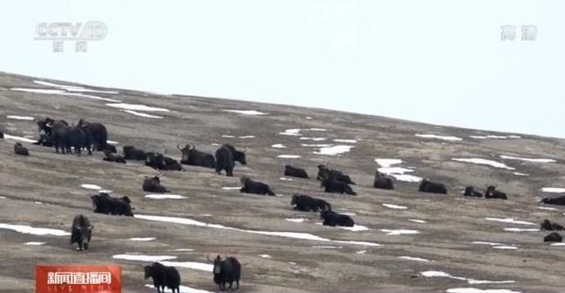 甘肃盐池湾国家级自然保护区管理局局长 裴雯:这些画面都是我们保护区的工作人员在巡护、监测的过程中拍摄的一些画面,野牦牛不怎么怕人,同时还追着车跑,我们的工作人员看见野牦牛非常兴奋!发现这个野牦牛群有二三百只那么多。