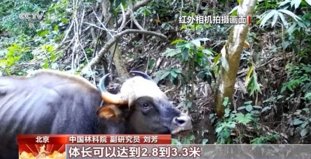 中国林科院副研究员 刘芳:在我国野牛仅仅发现于云南的南部、西南部,主要分布在普洱市、西双版纳等等地区,种群数量加起来不足200头,所以非常的稀少。