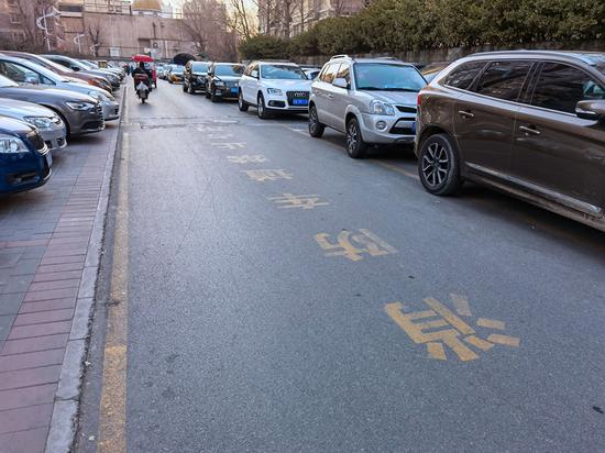 记者在走访中发现,火灾刚过去几天,该小区私家车挤占消防通道的现象仍然存在。在小区东三门附近,一溜私家车都停在马路牙子下面,右车轮压着消防通道的标志线,有的还探出大半个车身。9号楼东侧,消防通道黄线内接连停了5辆老年代步车,稍大些的私家车想要过去都费劲,更不用说消防车了。部分十字路口的消防通道网格线上也停着私家车。