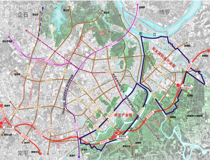 莞番高速公路是广东省境内一条拟建的东西横向的高速公路,连接珠江西岸的广州市番禺区和珠江东岸的东莞。其中,莞番高速在桥头设有2个出入口,是桥头融入大湾区的主动脉,对改善桥头区域交通面貌,提速经济发展具有十分重要的意义。
