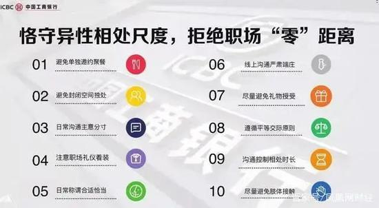 原标题:刷屏!工行“最强员工行为规范”火了:异性员工避免单独约饭、尽量避免肢体接触、日常沟通注意分寸…