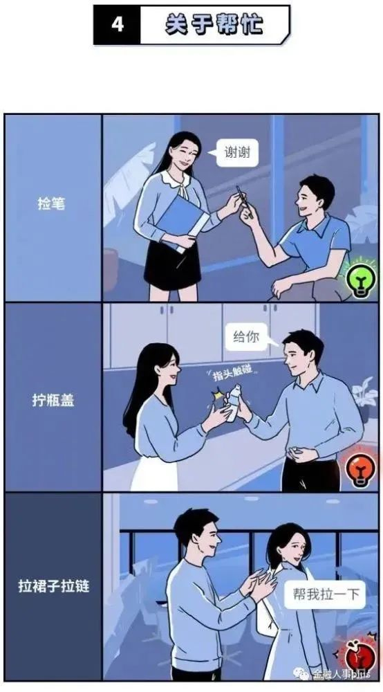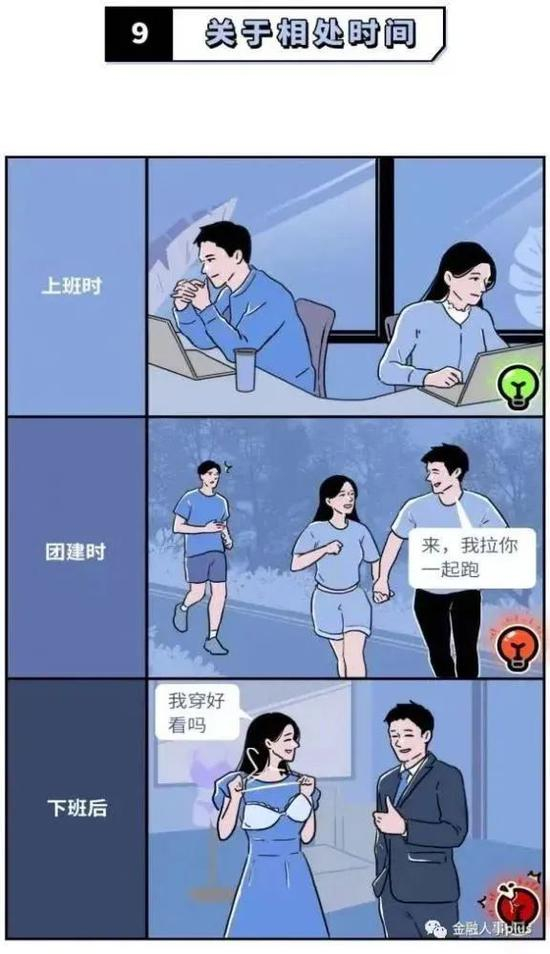在相处时间上,漫画提倡避免团建时、下班后与异性单独相处;