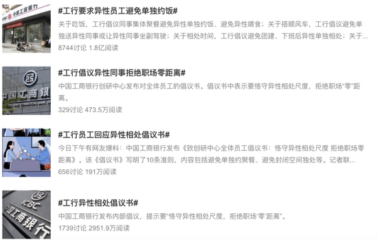3月2日晚间,“工行要求异性员工避免单独约饭”冲上微博热搜引起网友广泛讨论。