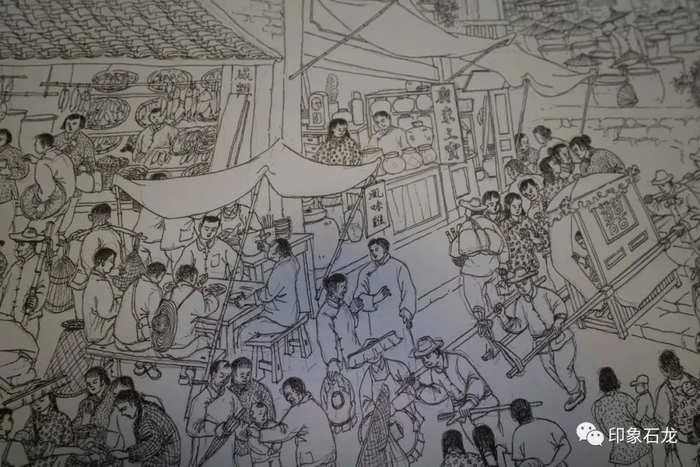 自从石龙梁润泉创作的8.88米的长卷画作《东莞老百行》曝光后,街坊朋友从中找到了许多老街的童年回忆,有网友看到还称此画作堪称“石龙版的《清明上河图》!”