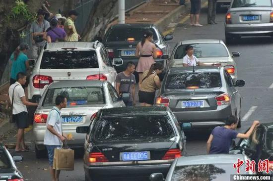 2013年,海口市大同路、海秀东路段,三五成群地“黄牛”在机动车道上拦车兜售倒卖月饼票,导致交通拥堵,险象环生。