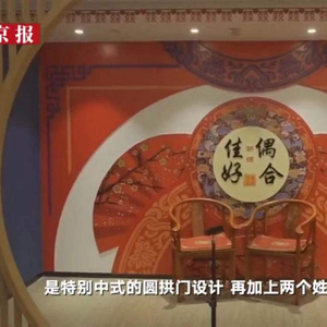 ▲杭州5A级婚姻登记处,设姓氏联姻拍照点,配自拍杆记录宣誓,新京报我们视频截图。
