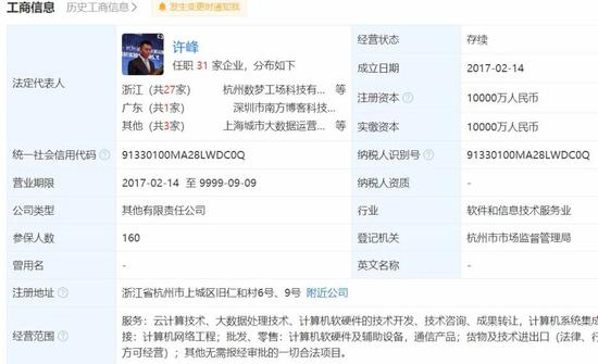 天眼查显示,杭州城市大数据运营有限公司(CityDO)是一家城市大数据运营服务商,公司经营范围包括云计算技术、大数据处理技术、计算机软硬件的技术开发、技术咨询、成果转让,计算机系统集成等。