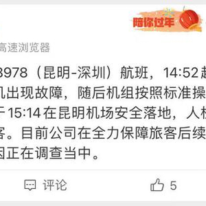 [深圳航空一架飞机起飞后发动机故障,已安全返航]据深圳航空官方微博消息,3月19日,深航ZH8978(昆明-深圳)航班起飞后左发动机出现故障,随后机组按照标准操作程序返航昆明,于15:14在昆明机场安全落地,人机安全,正常组织下客。目前公司在全力保障旅客后续出行安排。具体原因正在调查当中。