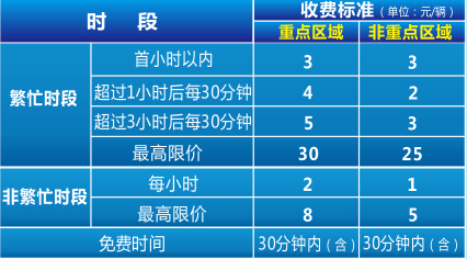 2、停放时间超过免费时限的,按照实际停放时间计费,不足一个计费单位的按一个计费单位计算;一个计费单位跨不同时段的,按高收费时段标准计费;免费时限计入计费时段。