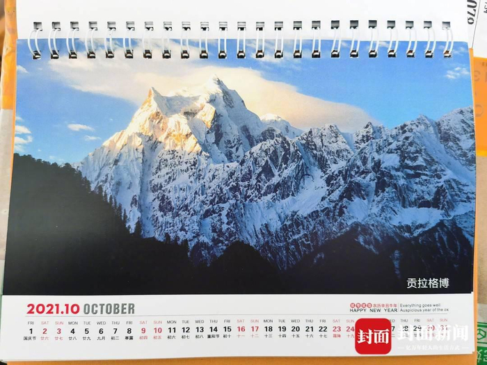 为了向更多的人分享自己拍摄的冰川,王相军摆过地摊,卖冰川照片,2元一张。后来,他注册了快手账号,在网上卖冰川照片;平台不让卖,他又把照片装进优盘,卖优盘;平台又不让卖了,他便通过直播带货,把冰川照片作为赠品送给顾客。2020年,这些冰川照片,升级为定制台历的配图。