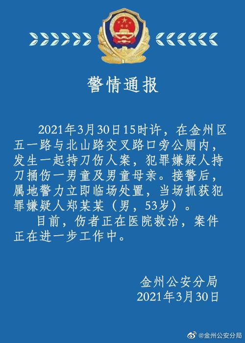 原标题:大连一男童及其母亲公厕内被捅伤,警方:一53岁男子被抓
