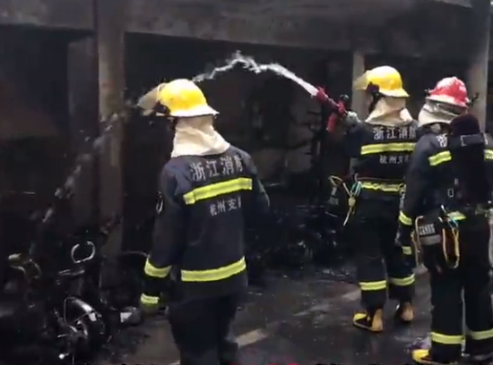 浓烟窜天!杭州市中心小区12辆电瓶车烧了起来
