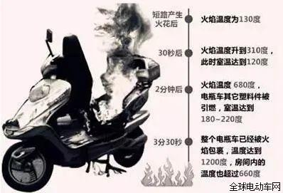 电动车引发火灾的特别危害表现在两点,即火场温度和毒烟。数据显示,3分钟,火温高达千度;30秒,有毒气体覆盖整个房间。
