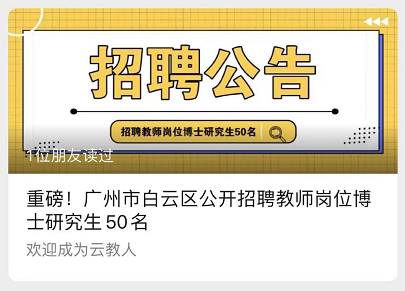 3月31日,广州市白云区教育局发布《广州市白云区2021年公开招聘教师岗位博士研究生公告》(以下简称“《招聘公告》”)。