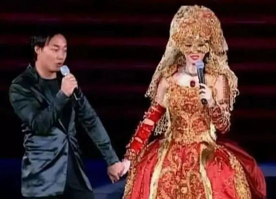 网友把他和韩红同台表演的画面做成表情包↓↓