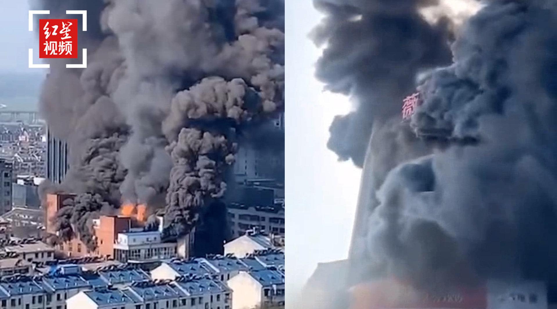 安徽池州一商业广场突发大火 消防:明火已扑灭